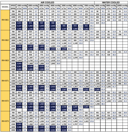 PRESSURE: 1000mmWC to 7000mmWC (Air cooled) 8000mmWC to 10000mmWC (Water cooled)